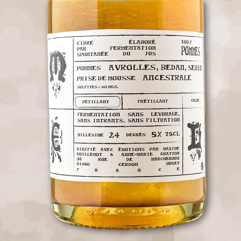 Cidre Traditionnel de Puisaye 2024, signé Maxime Guillemot et Anne-Marie Gratton de la cidrerie Fermont.