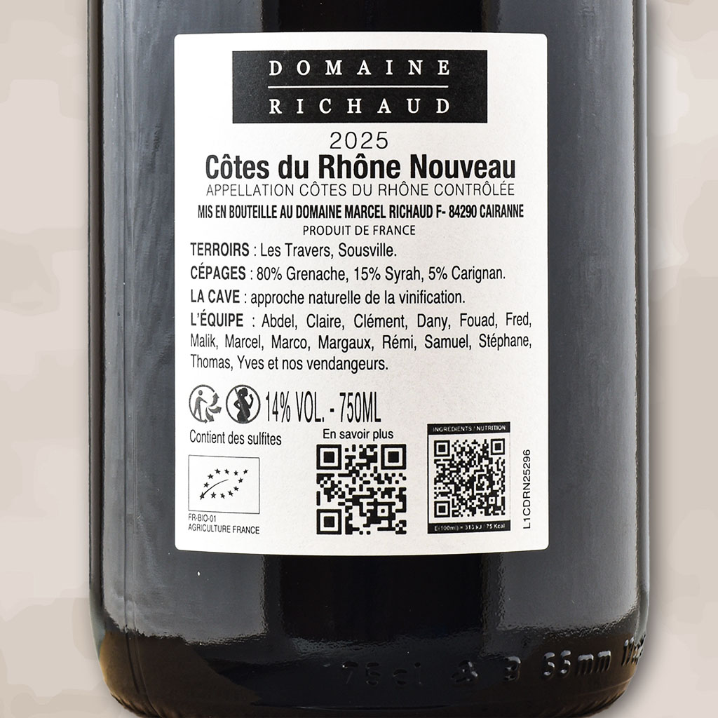 Côtes du Rhône Nouveau 2025, primeur du domaine Marcel Richaud.