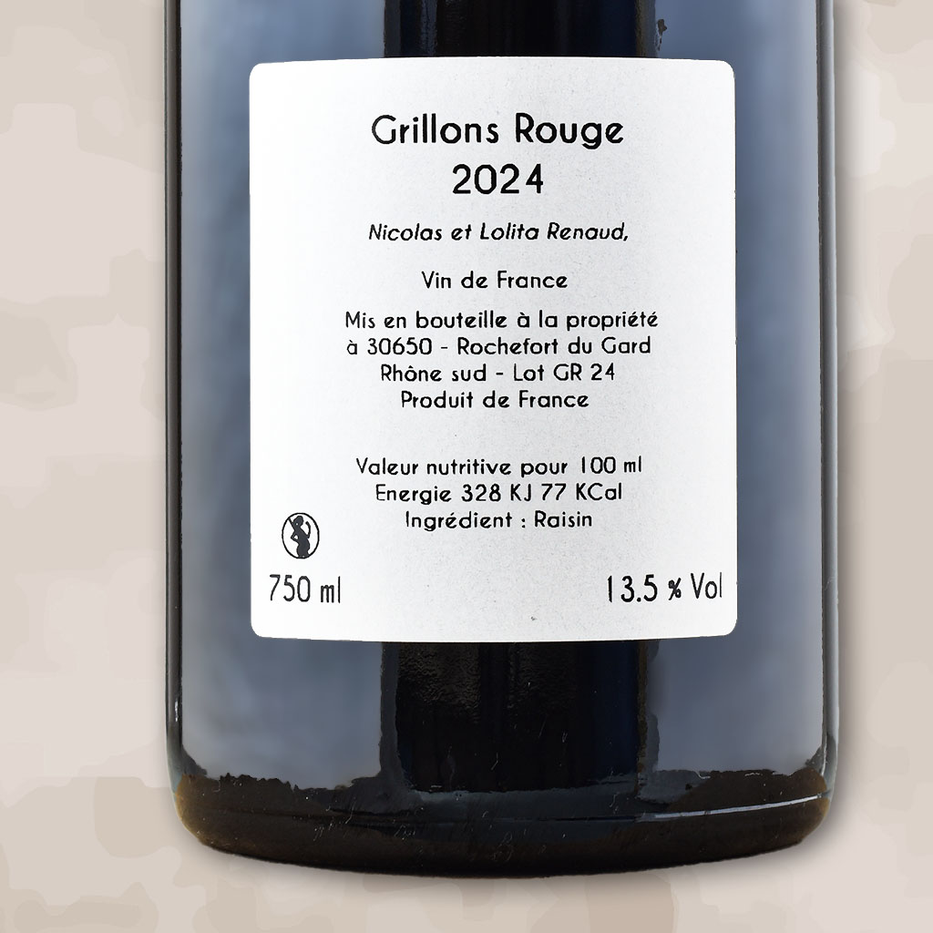 <h6>Grillons Rouge</h6>Coup de coeur pour Grillons Rouge 2024 du Clos des Grillons. 50% de Syrah éraflée, élevée en fûts (de plusieurs vins). Le reste sont des Grenache et Cinsault (sur calcaires) vinifiés en macération carbonique 1 mois en cuve inox. Le nez est élégant, sur des notes florales (pivoine). En bouche, la matière est soyeuse, y'a un super éclat, une belle énergie, avec la même aromatique qu'au nez. La finale est fraîche, salivante. Ça rappelle, je trouve, des Syrah du Nord. Très joli canon de Nicolas Renaud à un chouette rapport prix/plaisir. Pourquoi as sur une volaille marinée, des légumes d'été rôtis/grillés.