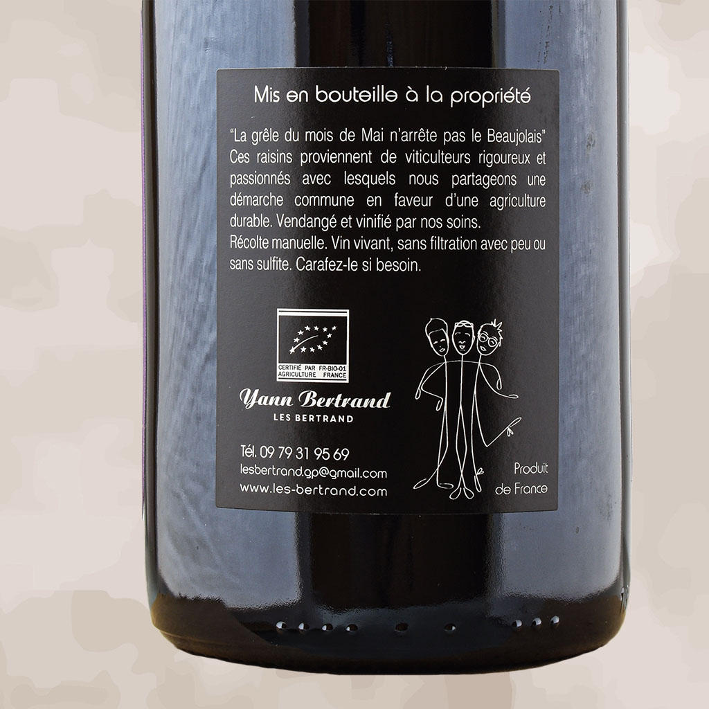 Yann Bertrand du domaine les Bertrand dans le Beaujolais produit des vins en agriculture biologique et biodynamique. Les vinifications se font en levures indigènes et sans intrants, sans sulfites ajoutés.
