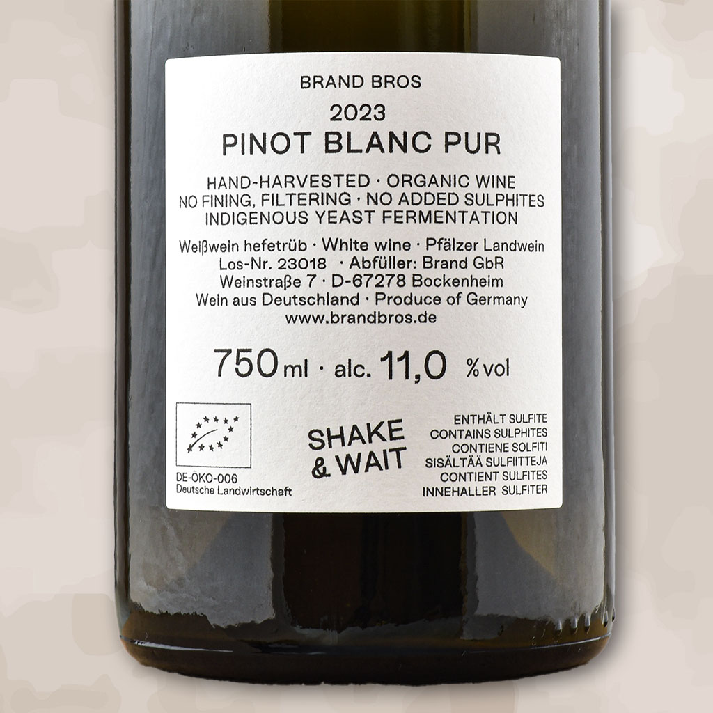 Pinot Blanc 2023, vin naturel d’Allemagne du domaine Brand Bros, dans le Palatinat (Pfalz).