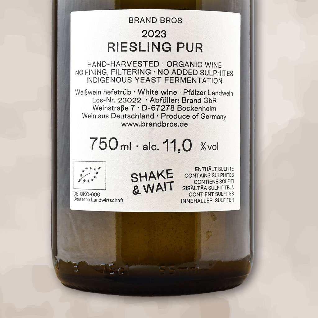 Riesling 2023, vin naturel d’Allemagne du domaine Brand Bros, dans le Palatinat (Pfalz).