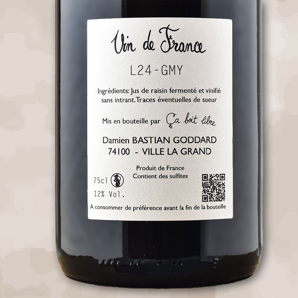 Damien Bastian, vigneron en Savoie, élabore des vins naturels sans intrants oenologiques, non collé, non filtrés et sans sulfites ajoutés. Tu peux retrouver la liste des ingrédients utilisés sur la contre étiquette, c’est transparent.
