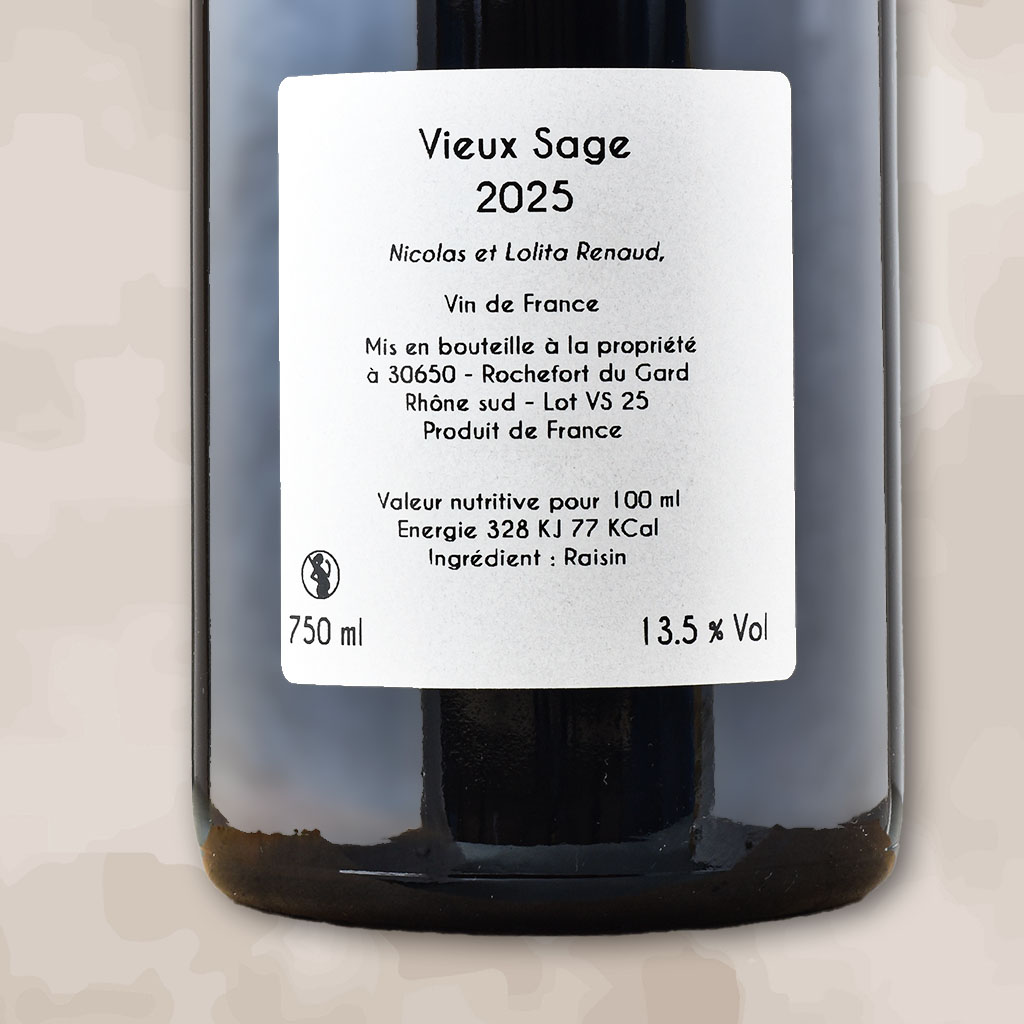<h6>Vieux Sage</h6>Coup de coeur pour Vieux Sage 2025 du Clos des Grillons. Une pure Syrah, vinifiée en macération carbonique, issue de deux parcelles situées sur un terroir de terres blanches. Beaucoup de gourmandise dans ce Vieux Sage aux tanins souples, veloutés. Du jus, de la maturité, avec des notes de café, de caramel et de fleurs. A savourer pourquoi pas sur un barbecue, du canard rôti, des champignons. En cas de présence de gaz, n'hésite pas carafer et à secouer la carafe juste avant de servir. Un joli vin naturel du Rhône Sud signé Nicolas Renaud.